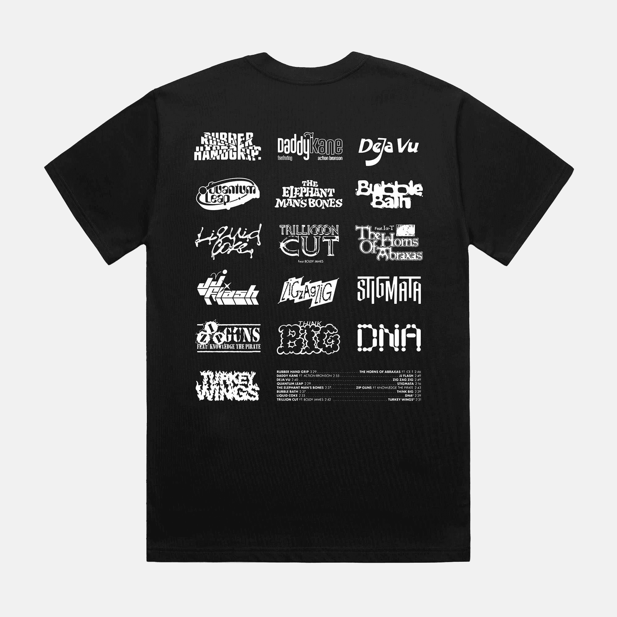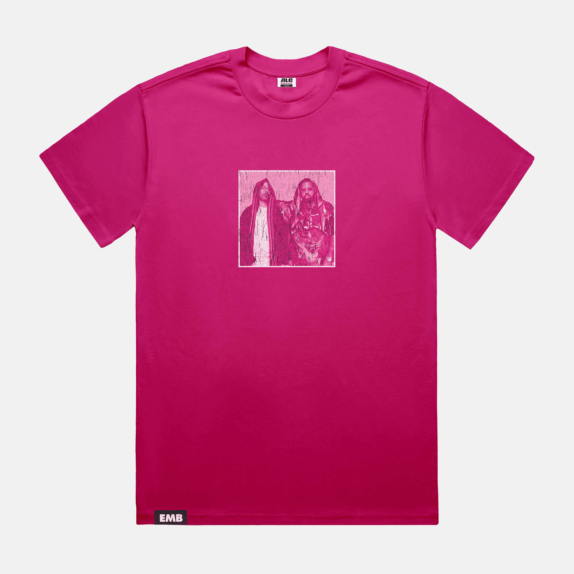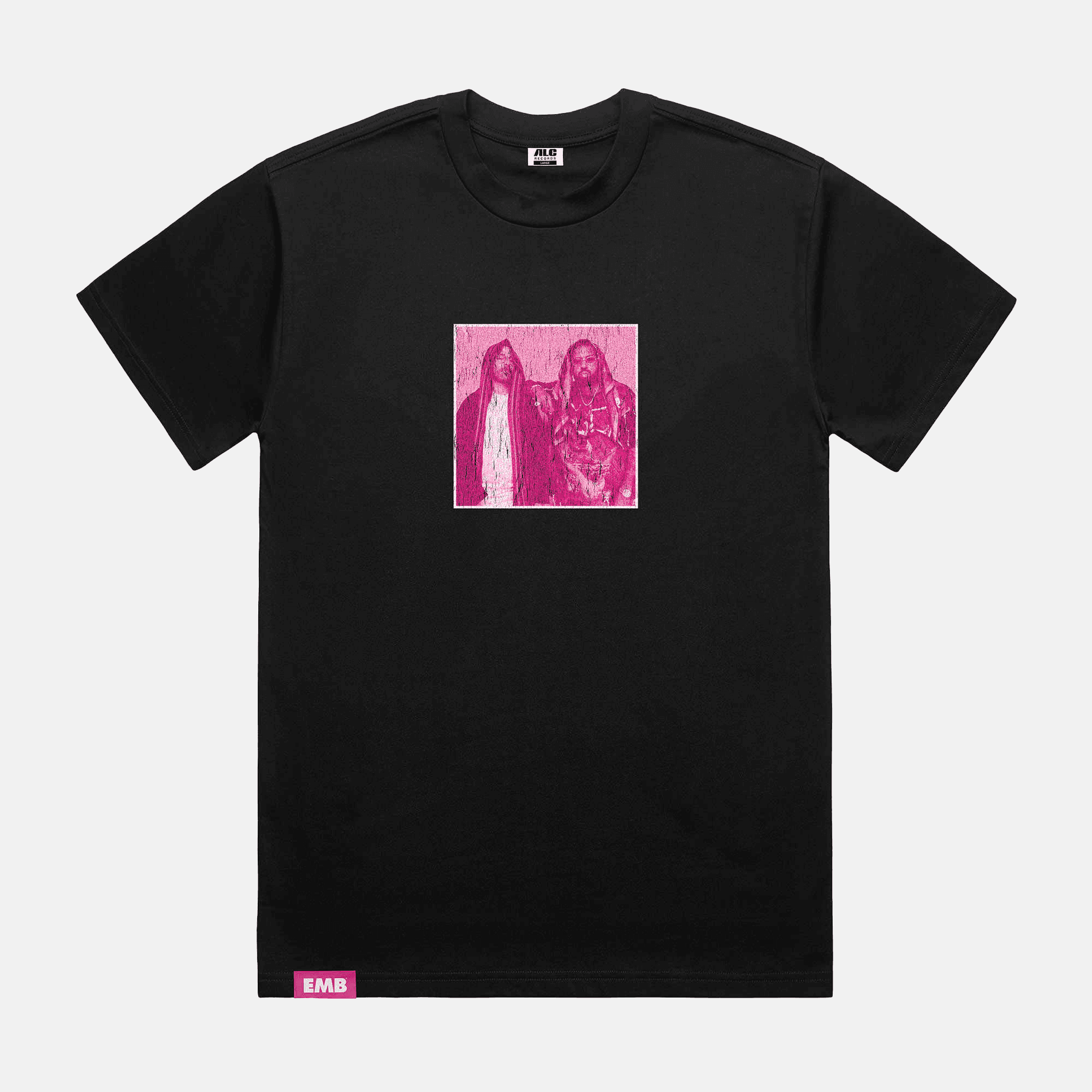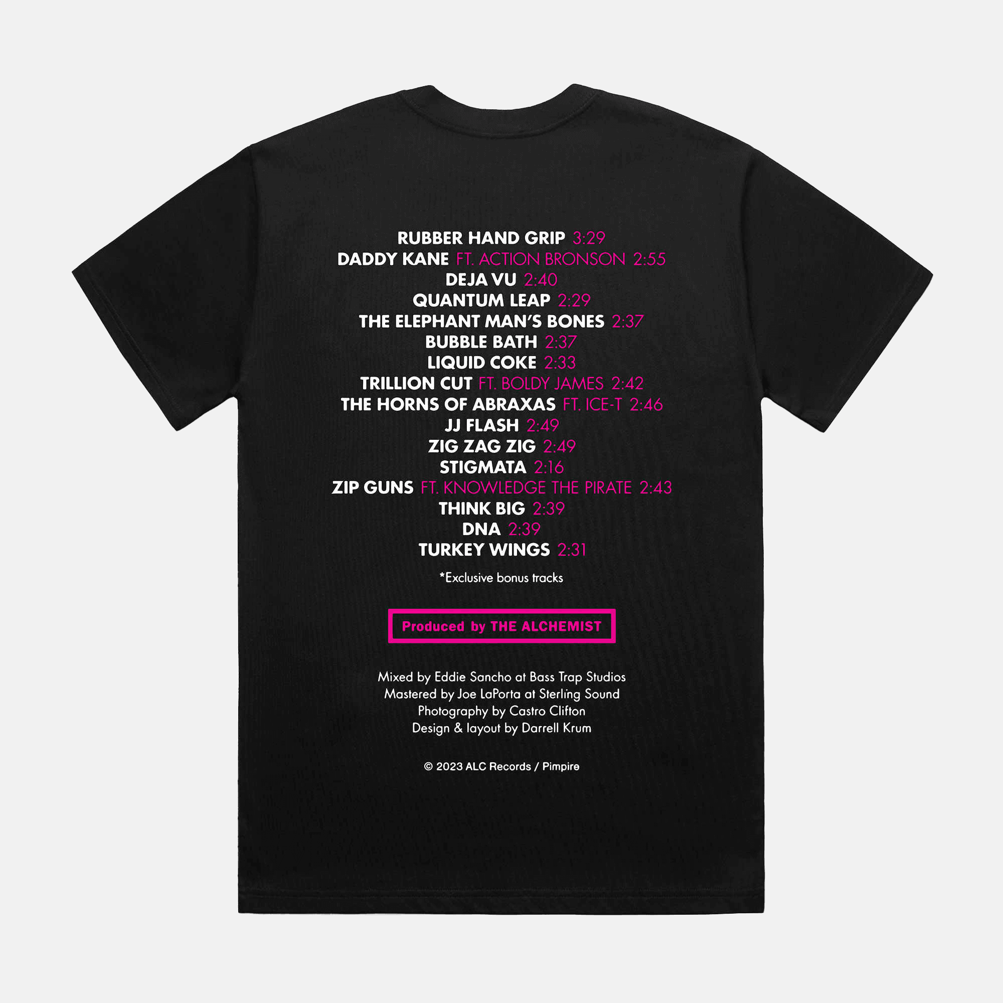 Designing the merch for the re-release of The Elephant Man's Bones by The Alchemist and Roc Marciano was an exciting opportunity to revisit the project with a fresh perspective. For this second merch drop, I took a completely different approach from the first, opting for a minimalistic design that directly referenced the album cover. The capsule featured monochromatic tones to highlight the raw, gritty nature of the album, while aggressive pink hues added a bold contrast, injecting energy and intrigue into the designs.